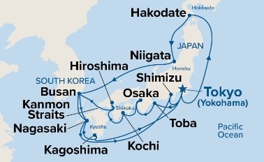 12 ports from Yokohama (Tokyo)