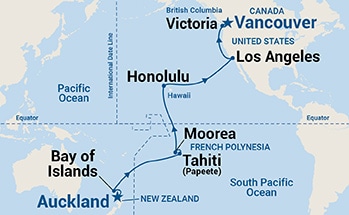 8 ports from Auckland (New Zealand) to Vancouver